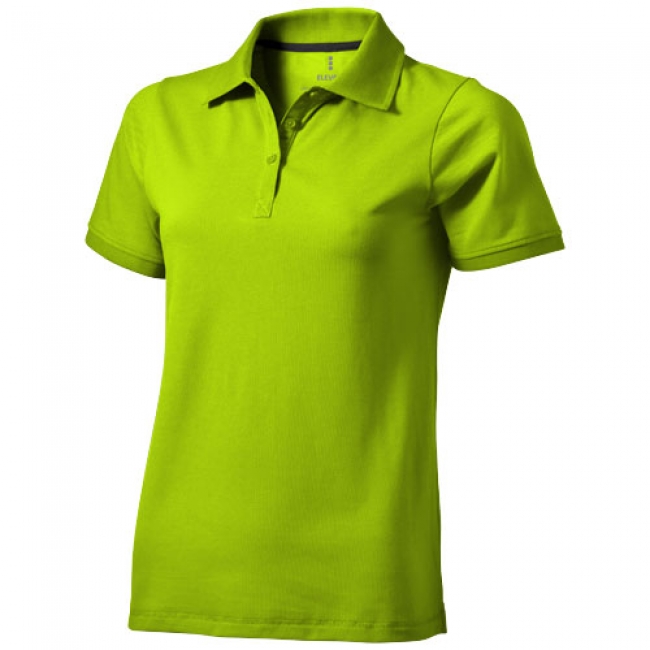 Yukon Ladies polo. 1x1 rib collar and cuffs. Half moon . Mens 2 button placket, Ladies 3 button placket. Pick-Stitch details. Droptail. Side splits. Mens forwarded shoulder seam . Tonal logo print at back. Satin neck tape. Single Piqu‚,60% Polyester, 40% Cotton. 210 g/m2