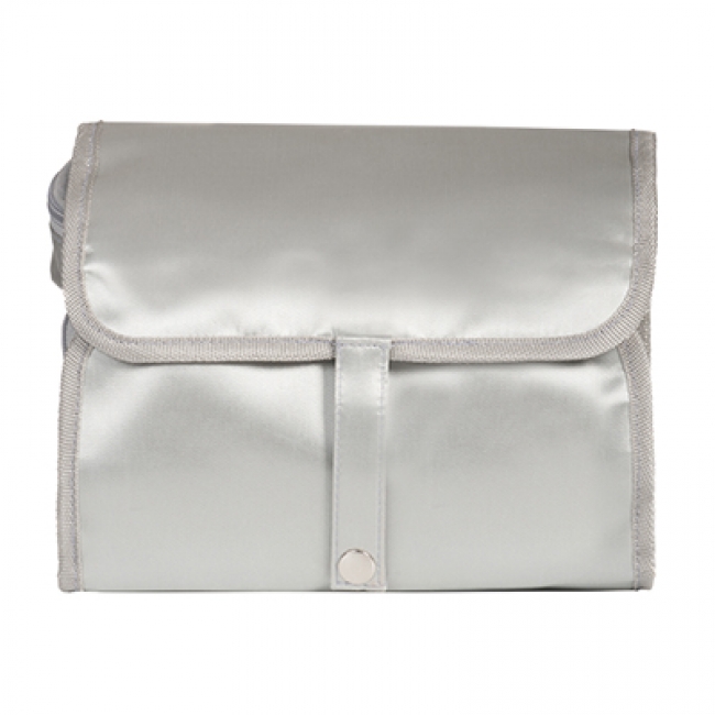 Beauty bag with hanger and a snap button closure. With 3 zippered main compartments, side mesh compartment and a detachable zippered case for storing. Includes an interior carrying handle.Content not included.