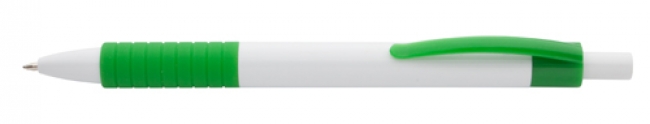 Pix din plastic cu corp alb, dispozitiv de prindere colorat si cauciucat, cu clips. Mină albastră.