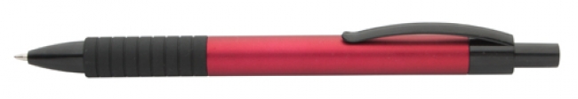 Pix din plastic cu corp colorat metalic, dispozitiv de prindere negru cauciucat, cu clips. Mină albastră.