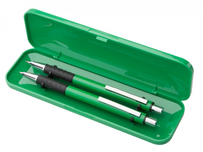 Pix şi creion mecanic(0.7 mm) din aluminiu în etui din plastic. Mină albastră.