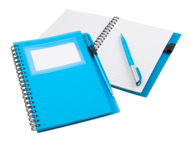 Carneţel cu copertă din plastic, cu 70 de pagini dictando, pix cu mină albastră.
