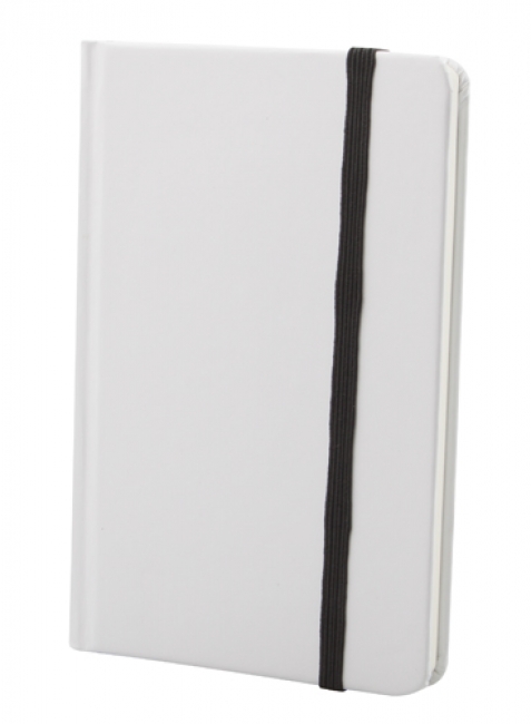 Blocnotes cu copetă din carton alb, cu 80 de pagini, curea cauciucată.