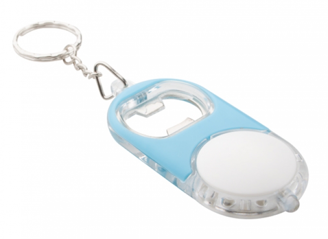 Desfăcător din plastic, cu LED alb şi inel din metal. Baterii incluse.