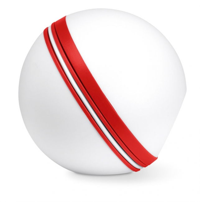 Boxă stereo în formă de minge, cu finisaj mat, cablu de cuplare pentru telefoane inteligente sau tablete.