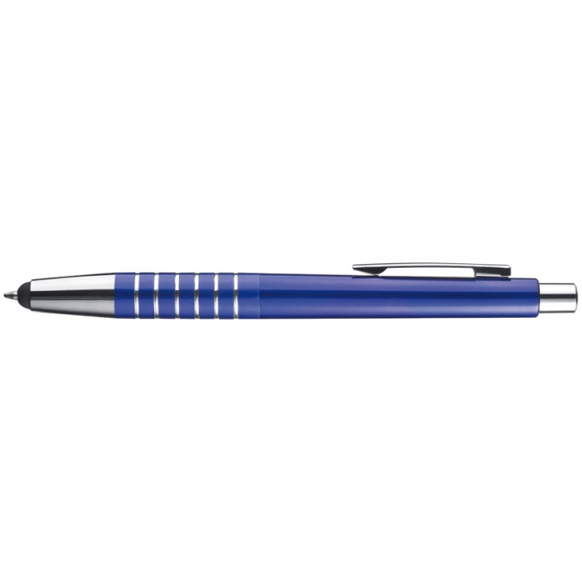 Are you looking for a ball pen which can also be used for smart phones and tablet PCs? Then this one made of metal-plastic is ideal for that purpose. The ball pen must not even been turned when wanting to use the touch pad, as the pad is located on top of the ball pen. The large refill and the silver applications highlight the ball pen. We will place your advertising next to the clip.