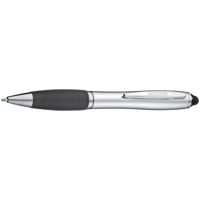 Classic design with modern touch function. This plastic ball pen with satined coating can also be used as touch pen by turning it around. Metal clip, rubbered cuff and large refill complete the ball pen. Will will print your advertising right from the clip.