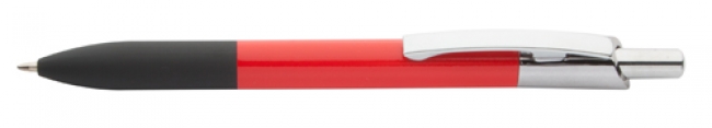 Ballpoint pen with aluminium barrel, metal clip and rubberized tip. With blue refill.
