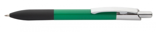 Ballpoint pen with aluminium barrel, metal clip and rubberized tip. With blue refill.