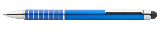 Plastic and aluminium ballpoint and touch screen pen. With blue refill.