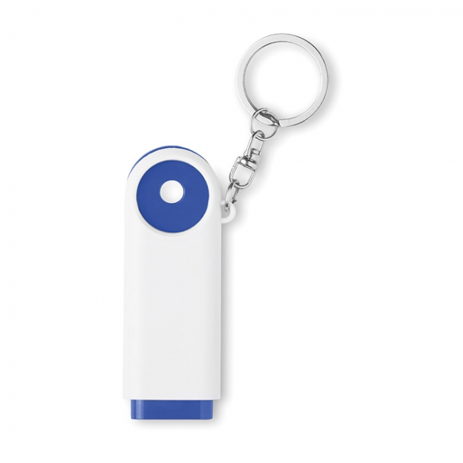 Breloc din plastic ABS cu lanternă şi fisă pentru căruciorul de cumpărături. Include 1 baterie de tip AG13.