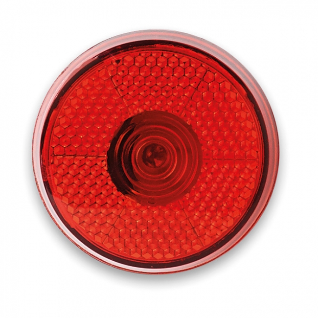 LED cu lumină care clipeşte, tip "ochi de pisică", cu clip de prindere pe spate şi 2 baterii de tip AG13 incluse.