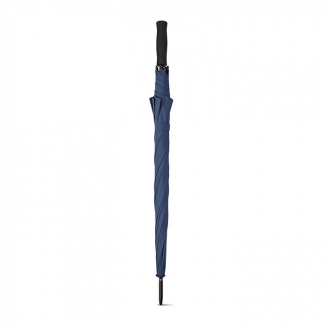 Umbrelă de 27 inch din material mătăsos moale, cu mâner din material EVA, tijă metalică neagră şi vârf din plastic negru. Deschidere automată.