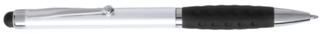 Plastic ballpoint and touch screen pen with coloured rubber grip and matching colour touch stylus. With blue refill.