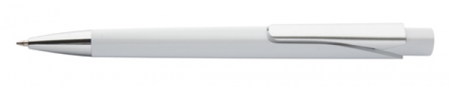 Plastic ballpoint pen with silver clip and chrome tip. With blue refill.