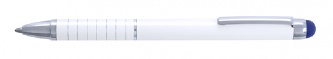 Aluminium ballpoint and touch screen pen, with white body and coloured touch stylus. With blue refill.