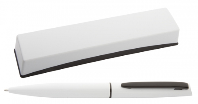 Aluminium ballpoint pen in matching colour plastic case. With blue refill.