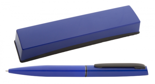 Aluminium ballpoint pen in matching colour plastic case. With blue refill.