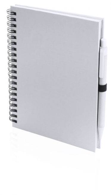 Carton covered spiral notebook with 70 sheets, and matching colour recycled paper ballpoint pen with blue refill, A/5.