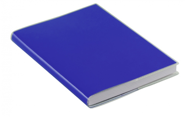 Coloured paper covered notebook with 100 sheets and protective PVC cover.