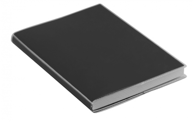 Coloured paper covered notebook with 100 sheets and protective PVC cover.