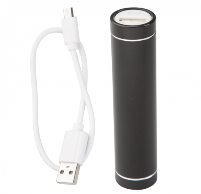 Aluminium USB power bank with 2200 mAh battery. Including USB-mini USB charger cable.