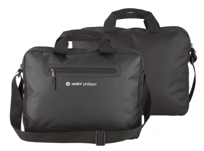 600D polyester and tarpaulin document bag with zipped front pocket and adjustable shoulder strap. André Philippe brand product.