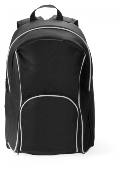 Backpack with zipped pockets, padded back and shoulder straps. 600D polyester.