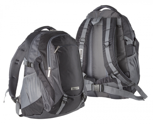 Backpack with zipped front pockets, mobile phone holder, mesh pockets and padded adjustable shoulder strap. Made of 420D polyester. Orizons brand product.