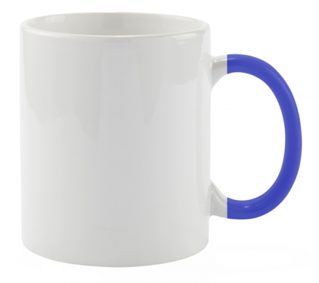 White ceramic mug with coloured handle, 350 ml.