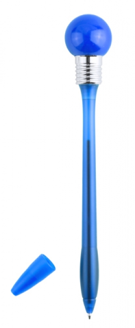 Plastic ballpoint pen with soft plastic ball on the top, including motion-sensitive LED light. With blue refill and button cell batteries.