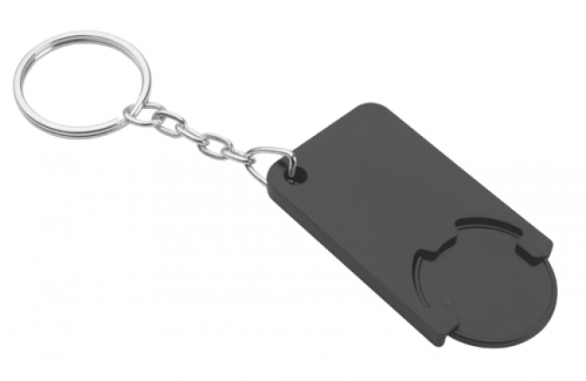 Plastic keyring with shopping trolley coin.