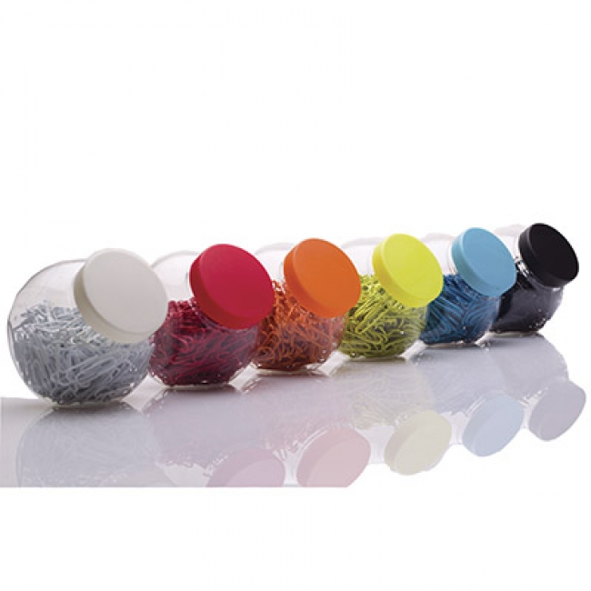 Candy box with 200 pc of paper clips. Three imprint areas make your logo always visible. Available in six fresh colours.