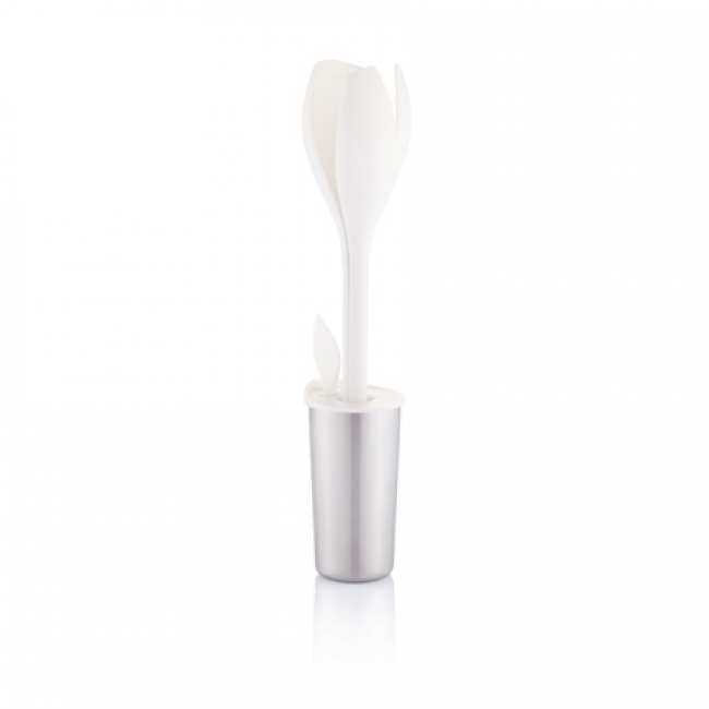 Put a flower on your table and delight your guests with the Tulip salad set. The base has a dual function as a cup allowing you to easily mix and serve your dressing and also stores the utensils. If you have any left-over dressing, the cup can be sealed and stored in the fridge. Registed design®