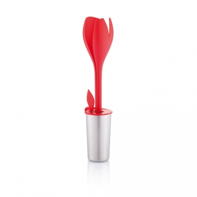 Put a flower on your table and delight your guests with the Tulip salad set. The base has a dual function as a cup allowing you to easily mix and serve your dressing and also stores the utensils. If you have any left-over dressing, the cup can be sealed and stored in the fridge. Registed design®