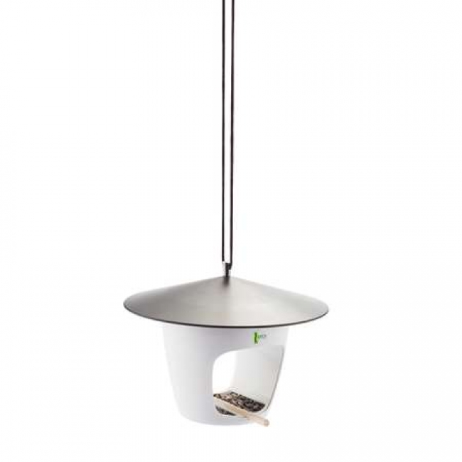 Unscrew the roof and you are able to fill the whole feeder with birdseed. It drops down automatically to the feeding tray. The feeder is easy to take apart and clean. With a real wooden pole. The birds will love visiting your garden.