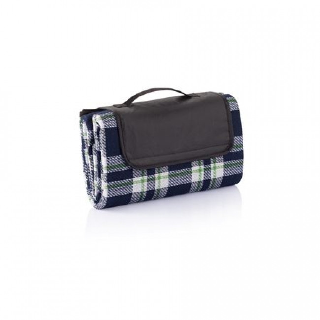 Traditional styled blanket, size 130x145cm, top woven acrylic 120gsm coloured square pattern, back of blanket is waterproof PVC 110gsm.