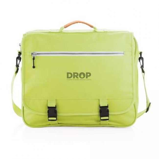 600D polyester congress bag with 1 main compartment. The front panel has 1 patch pocket to store smaller objects like your keys + 4 pen holders + 1 smaller pocket to store for example your mobile phone or name cards.