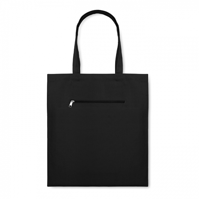 Sacoşă de cumpărături din pânză, cu mânere scurte şi buzunar frontal cu fermoar. 280 gr/m2.
