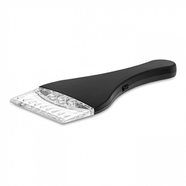 Racletă de gheaţă din plastic ABS cu 3 LEDuri de lumină. 4 baterii de tip LR41 incluse.
