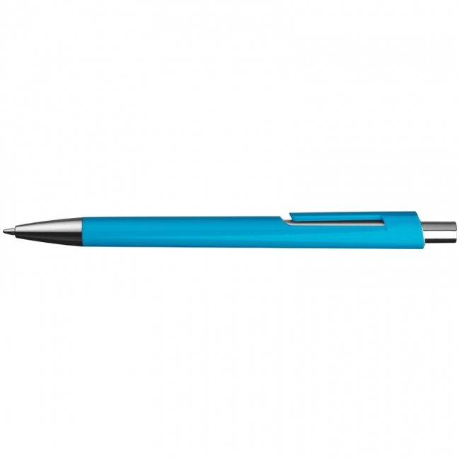 Pix plastic cu mină mare albastră, accesorii argintii, disponibil in diferite culori. Personalizarea vă recomandăm prin tampografie.