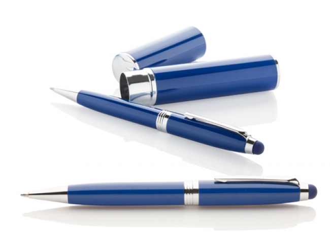 Pix metalic touch screen, mină albastră, în cutie de aluminiu.