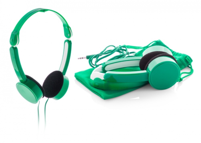 Căști pliabile din plastic, conector jack 3,5 mm, în husă din poliester.