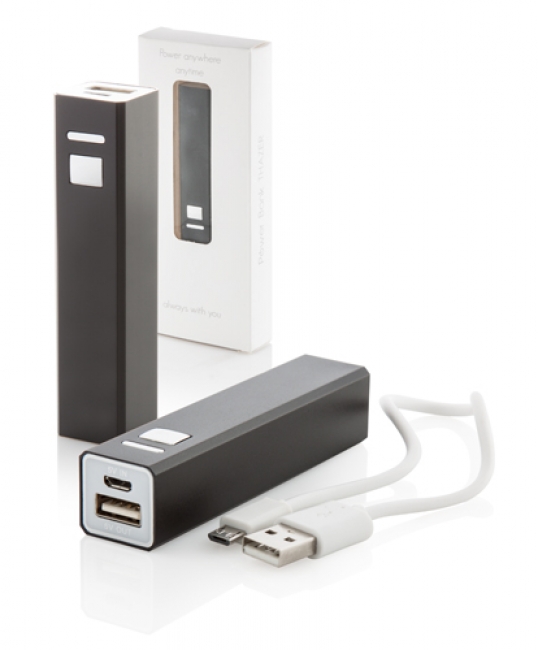 Baterie externă din aluminiu, 2000 mAh, cu mufă micro USB.