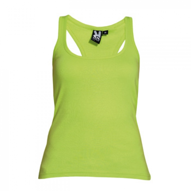 Tricou cambrat, cu răscroiala mânecii și decolteu cu garnitură lată și răsucită. Spate tip înotător și cu cusături laterale. Cod : 6517_69. Aplicam personalizare.