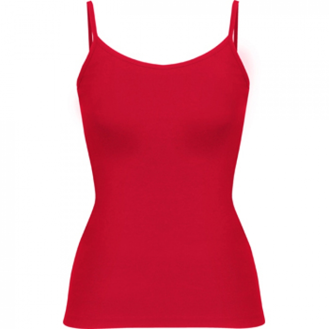 Acasa / Colectia textile Roly / Colectia de vara / Bluză damă cu bretele subțiri. Detaliu la clemele de plastic pentru bretele. Croială cambrată, cu cusături laterale.