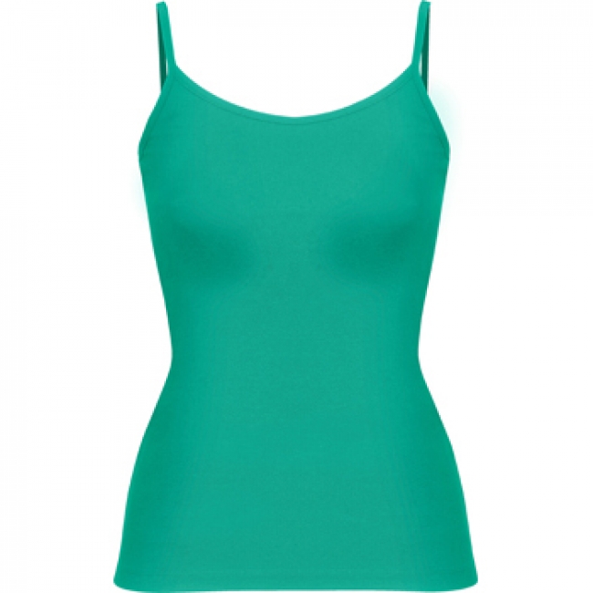 Acasa / Colectia textile Roly / Colectia de vara / Bluză damă cu bretele subțiri. Detaliu la clemele de plastic pentru bretele. Croială cambrată, cu cusături laterale.