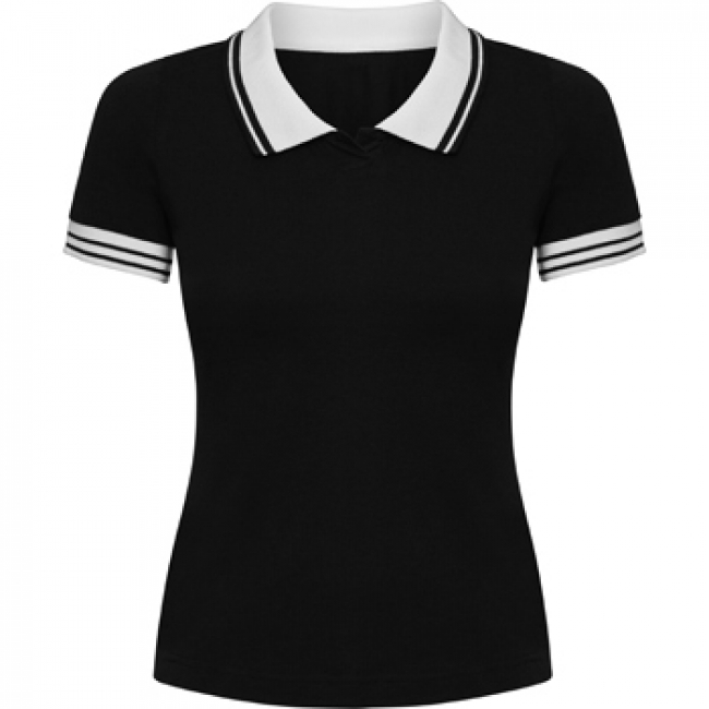 Tricou polo cu mânecă scurtă, cambrat. Fantă mini fără nasturi. Guler și manșete tricotate din material combinat. Șlițuri laterale cu partea din spate mai lungă. Cusături laterale.; cod produs : 6637_02