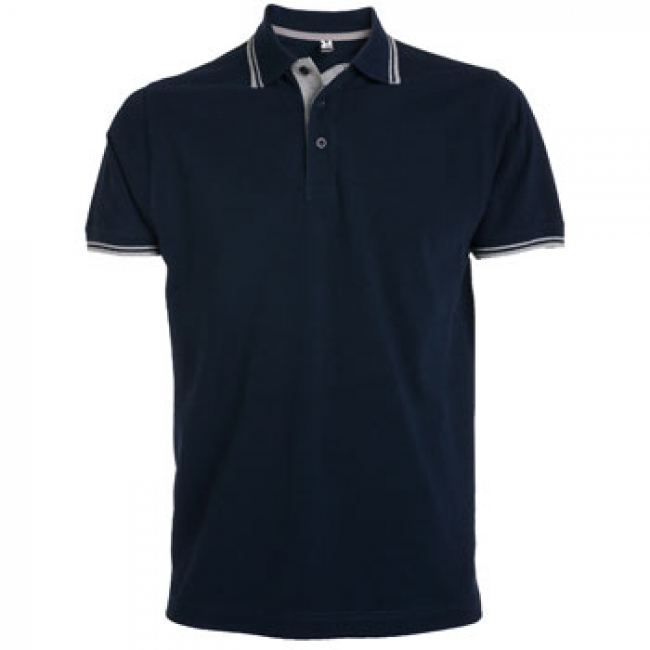 Tricou polo cu mânecă scurtă, guler cu fantă de 3 nasturi de aceeași culoare. Fantă interioară în contrast cu cea exterioară. Guler și manșete canelate, bandă întărită pentru acoperirea cusăturii la guler. Șlițuri laterale.