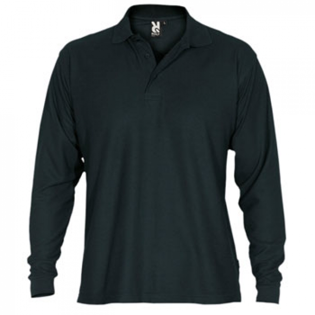 Tricou polo cu mânecă lungă, guler și manșete canelate 1x1 cu elastan și bandă întărită pentru acoperirea cusăturii la guler. Fantă cu 3 nasturi pentru adulți și cu 2 nasturi pentru copii. Șlițuri laterale.